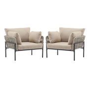 Modern Iron Lounge Chair Set With Rope Weave And Plush Cushions For Indoor Outdoor Relaxation - Beige / Gray
