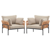 Lounge Chairs With Cushions / Wood Tone Rope Accents, Iron And Rattan (Set of 2) - Beige / Natural