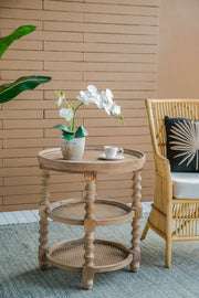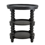 Round 3 Tiered Side Table With Rattan Shelf - Black