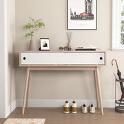 Rustic Entryway Console Table With Sliding White Doors And Wood Legs - Natural