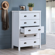 Crafted from high-quality engineered wood, the SAFARI 5 Drawer Chest is designed for durability and long-term use. The robust frame and quality materials ensure that it remains a functional and attractive piece of furniture for years to come.