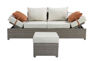 Salena - All Weather Wicker Patio Sofa & Ottoman With 2 Toss Pillows - Beige / Gray