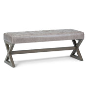 - Features Quilted vertical stitching on bench top and solid wood sturdy X design trestle base in a driftwood color