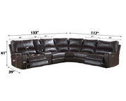 Saul - Faux Leather Power Recliner Sectional Sofa With USB Port Cupholder Console - Espresso