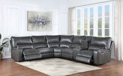 Saul - Leather Aire Power Motion Sectional Sofa With USB Port Cupholder Console - Gray