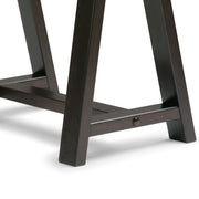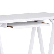 • Features a simple and wide, extra thick table top surface, integrated wood keyboard tray and sturdy sawhorse supports