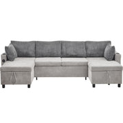 Sectional Sofa Bed With Pull Out Sleeper, Storage Chaise Lounges, USB Ports, Cup Holders - Gray