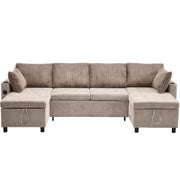 Sectional Sofa Bed With Pull Out Sleeper, Storage Chaise Lounges, USB Ports, Cup Holders - Beige