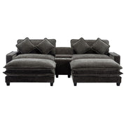 Modern Chenille Upholstered Sectional Sofa With Ottomans, USB Ports, Cup Holders, And Storage - Gray