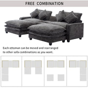Sectional Sofa Chenille Upholstered Sofa With Two Removable Ottoman, Two USB Ports, Two Cup Holders And Large Storage Box For Living Room