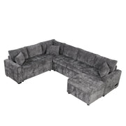Sectional Sofa Pull-Out Sofa Bed Sleeper With A Storage Ottoman, Three Pillows And Charging Devices For Living Room - Gray