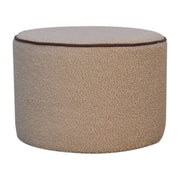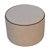 - Serenity Round Footstool - This beautiful and fashionable footstool is the perfect addition to any bedroom or living room. It is upholstered in a luxurious snow white boucle fabric and has a buffalo leather piping around the edge for a trendy look, it is perfect for putting your feet up, using it as a handbag stand, or as an accent piece in the home.