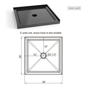 - Dimensions: 36L x 36W x 3.5''H, Center Drain