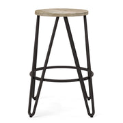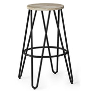 Simeon - Metal Bar Stool With Wood Seat - Natural / Black