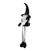 Sitting Gnome With Broomstick & Long Legs, For Halloween Decor - Black White