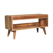 • Artisan Furniture Solid Wood bench with seat pad - This bench has been beautifully made from 100% solid mango wood in a finish. This bench provides comfort ability with a comfy seat pad upholstered from mud linen tweed and can be used in a variety of settings such as the bedroom, hallway or living room. Avoid placing your furniture under direct sunlight and/or near radiators. Also, occasionally polish the non-painted furniture parts with bees wax to retain sheen and for longer lifespan.
