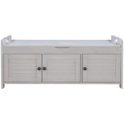 Storage Bench With 3 Shutter-Shaped Doors, Shoe Bench With Removable Cushion And Hidden Storage Space - Gray Wash