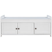 Storage Bench With 3 Shutter-Shaped Doors, Shoe Bench With Removable Cushion And Hidden Storage Space - White