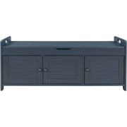 Storage Bench With 3 Shutter-Shaped Doors, Shoe Bench With Removable Cushion And Hidden Storage Space - Antique Navy