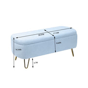 Storage Ottoman Bench For End Of Bed Gold Legs, Modern Gray Faux Fur Entryway Bench Upholstered Padded With Storage For Living Room Bedroom - Blue