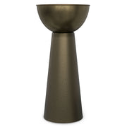 - Multipurpose tall metal table can be used as an end table, side table, or decorative piece.