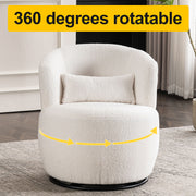 Plush Swivel Accent Chair, Contemporary Round Armchair With 360 Degree Rotation And Metal Base For Living Room Elegance - White Teddy