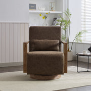 Swivel Modern Upholstered Accent Chair With Solid Wood Armrests And 360 Degree Comfy Lounge Reading Chair, Side Armchair For Living Room - Coffee