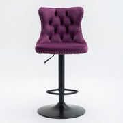 Swivel Velvet Barstools Adjusatble Seat Height, Modern Upholstered Bar Stools With Backs Comfortable Tufted For Home Pub And Kitchen Island (Set of 2) - Purple