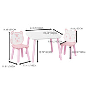Table And Chair Set, 3 Piece Wooden Toddler Desk With Animal Backrest - Pink / White