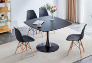Table Mid-Century Dining Table For 4-6 People With Round MDF Table Top, Pedestal Dining Table, End Table Leisure Coffee Table - Matte Black