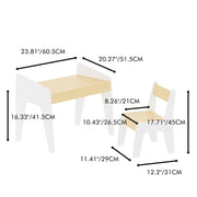 Table Set With 1 Chair, Children Study Table For Ages 2 - 8 - White