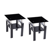 Modern 2 Piece Tempered Glass Sofa Table With Metal Legs For Living Room - Black