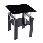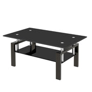 Tempered Black Glass Coffee Table, 2-Layers Tea Table - Black