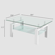 Luxury Modern Tempered Glass Coffee Table With 2 Layers And Solid Frame For Living Room - Transparent