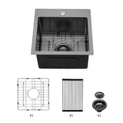 Topmount 16G Stainless Steel Kitchen Sink Deep Single Bowl - Gunmetal Black