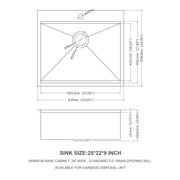 25" Drop In Kitchen Sink Stainless Steel 16 Gauge Workstation Single Bowl - Gray