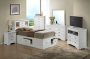 - Offers durable storage solutions with dove-tailed drawers in the headboard, footboard, and side rails. -