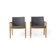 Tranquilize - Outdoor Wooden Club Chair With Woven Wicker Seat And Back (Set of 2) - Light Brown