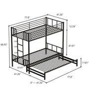 Twin Metal Pull Out Bunk Bed With Guardrail And Built In Ladder, Space Saving Convertible Frame For Bedroom - Black