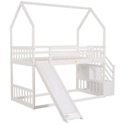 Twin Over Twin House Bunk Bed With Convertible Slide, Storage Staircase - White
