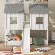Twin Over Twin House Bunk Bed With Slide And Windows - White / Gray