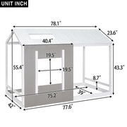 Twin Size House Platform Bed With Roof And Window - Natural / White