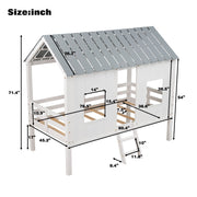 Twin Size Low Loft House Bed With Roof And 2 Front Windows - White