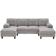 U Shaped Sectional Sofa Couch With Dual Chaise Lounges, Storage Pockets And Armrest Pillows - Gray