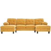 Modern U Shaped Sectional Sofa With Dual Chaise Lounges, Storage Pockets And Armrest Pillows - Yellow