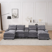 U Shaped Sofa With Console, Cupholders, USB Ports, 6 Seat Upholstered Symmetrical Sleeper Couch - Gray