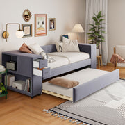 Twin Upholstered Bed With Storage And Twin Trundle, USB Charging Ports - Gray