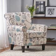 Upholstered Chair With Floral Pattern Design And Solid Wood Legs - Multi Color