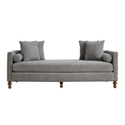 Chenille Upholstered Chaise Lounge With Nailheads And Rubberwood Legs, Wide Sleeper Sofa With 4 Throw Pillows & 2 Bolsters - Gray