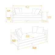 Upholstered Chaise Lounge Indoor With Nailheads, Sleeper Sofa Couch With 4 Throw Pillows & 2 Bolsters, Daybed With Rubberwood Legs